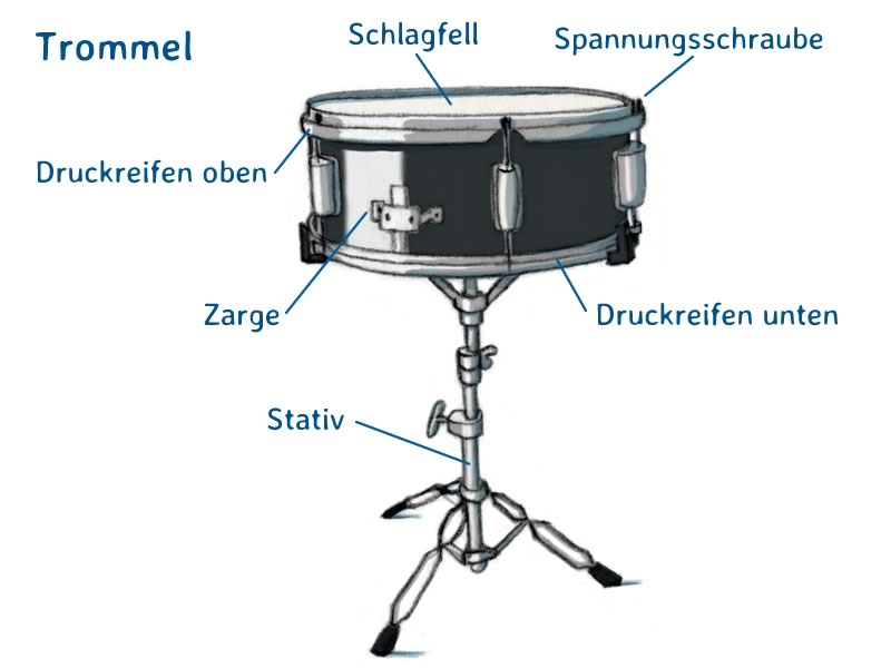 Es gibt viele verschiedene Schlaginstrumente, am bekanntesten ist wohl die Trommel.